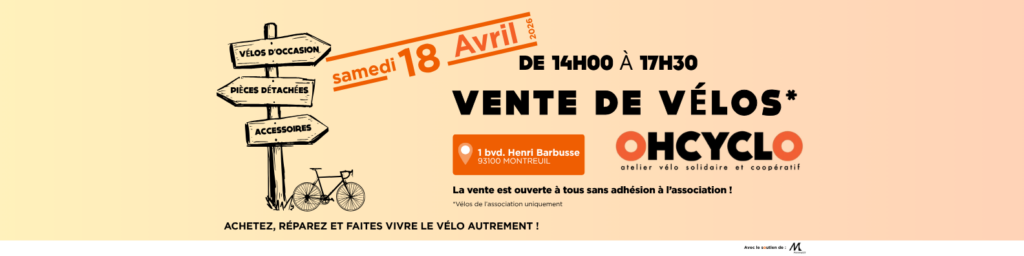 Les ventes de vélos “revus et corrigés” par OHCYCLO et le marquage BicyCode® ont lieu au même endroit, aux mêmes heures.
