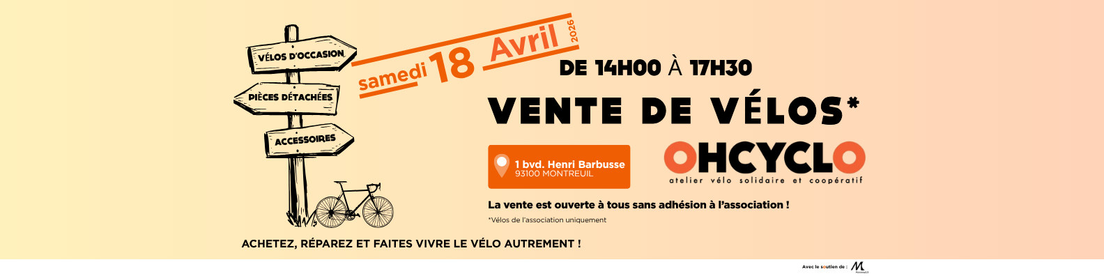 L’accès à l’atelier et les ventes hors bourse à vélos sont réservé aux adhérent.e.s à jour de leurs cotisation.